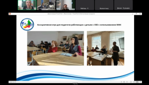 Оксана Сергеевна начала с объяснения концепции МАК, а также отметила, что МАК становятся современной технологией психологической поддержки педагогов, работающих с детьми с ограниченными возможностями здоровья. Оксана Сергеевна предоставила возможность поучаствовать в ее мастер-классе участникам заседания, порефлексировать на предложенные ею вопросы относительно темы мероприятия.